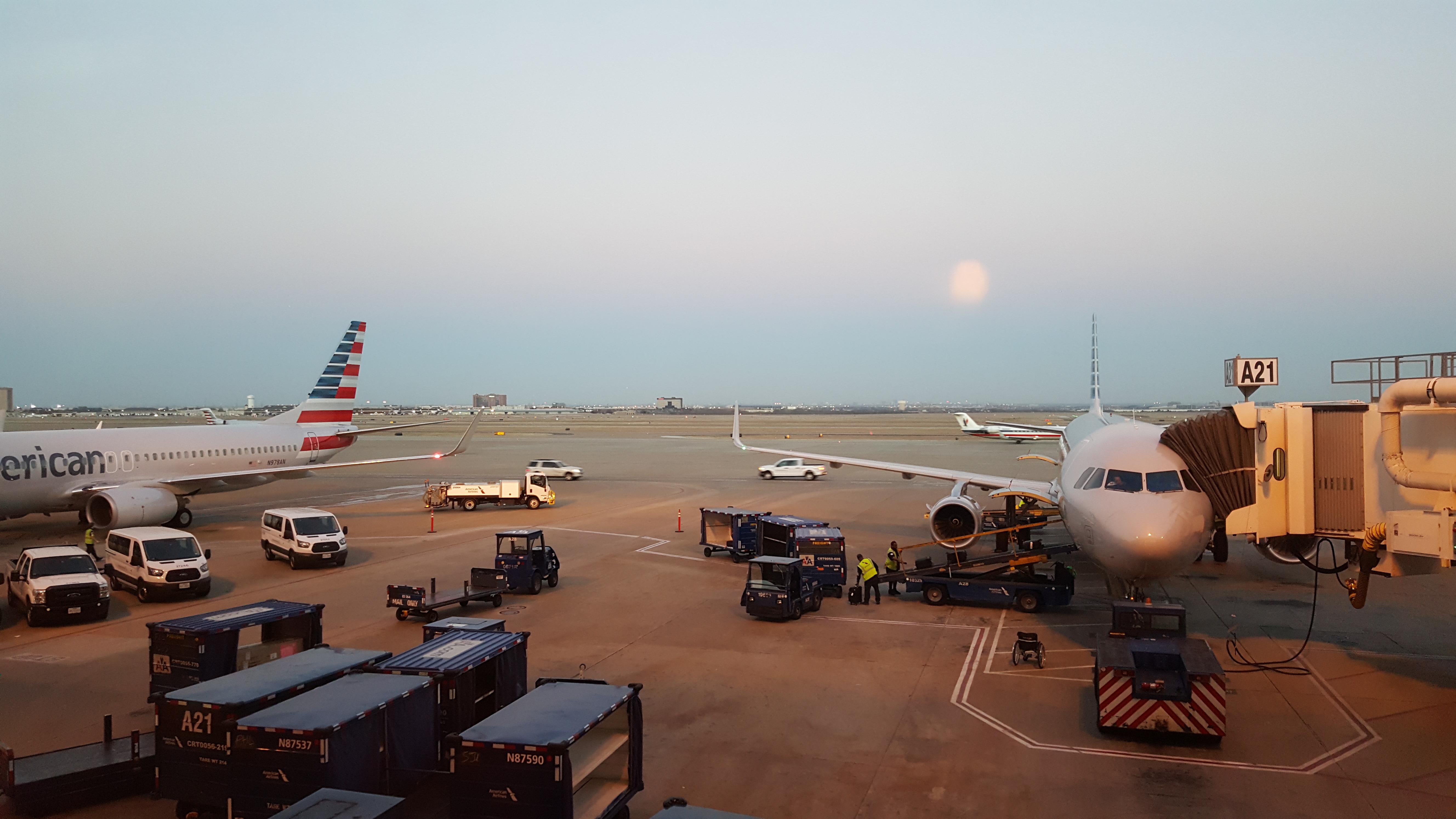 중간 경유지인 댈러스 공항에서의 창 밖 풍경은 평화로웠다. 산도 하나도 안 보이고.